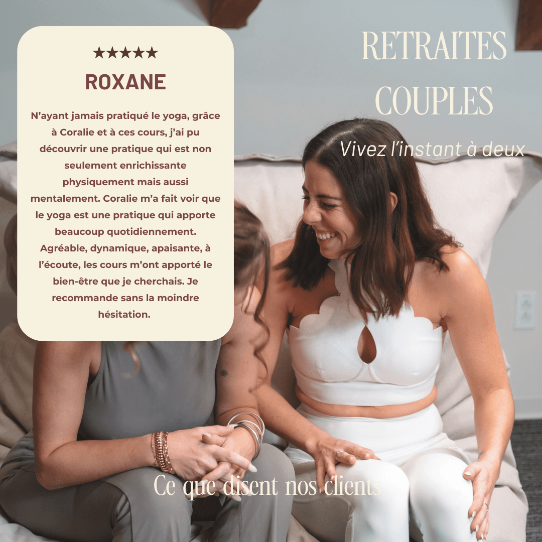 Coralie, fondatrice, professeur de yoga et infirmière. Passionnée de bien-être et de yoga. Après des années à accompagner des individus vers plus d’équilibre, elle a voulu créer un espace unique dédié aux couples. Parce que prendre soin de soi, c’est aussi prendre soin de son couple.